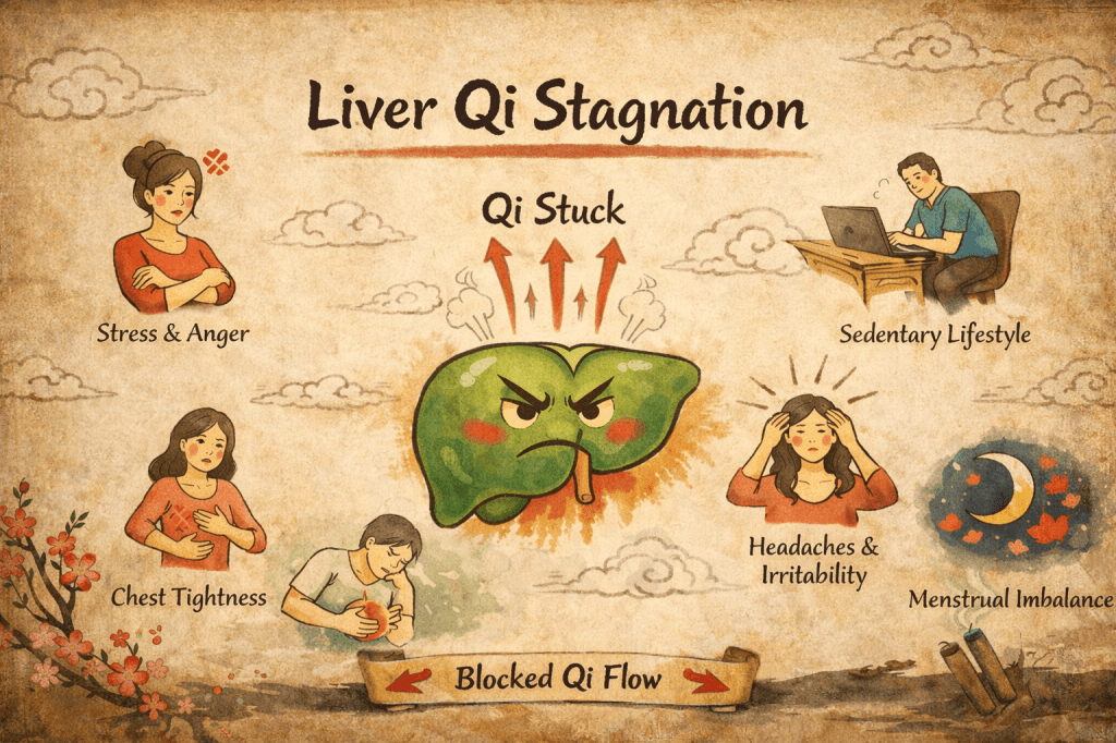 When Qi cannot move freely, it becomes “stagnant.” Over time, this stagnation may create both emotional and physical symptoms.
